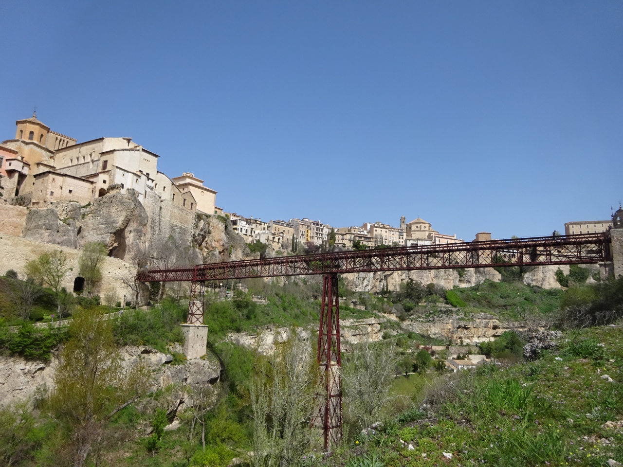 ウエカル川を挟んで、宙づりの家がある旧市街とパラドールのある対岸に架かる鉄橋です。もとからあった石橋が崩壊して、20世紀の初めに現在の形で架け替えられたそうです。