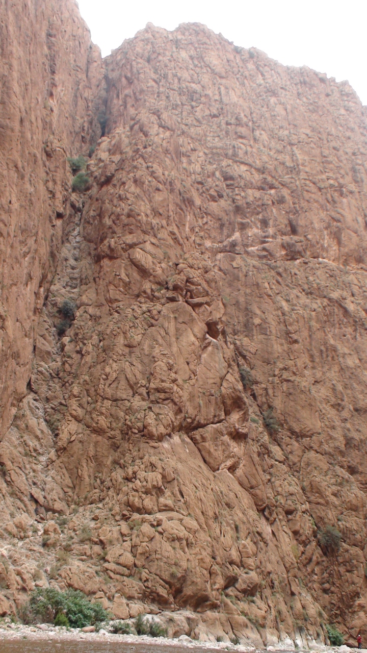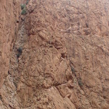 メルズーカの砂漠を通り抜け、いよいよ山岳地帯へと入ってゆく。ゴツゴツとした岩肌が層を成して現れる。やがて両側に60~80m位に覆いかぶさるように岩肌が迫ってくる。谷間には清流が流れ魚もすんでいる。渓谷の入り口にバスを止め、約300mほど散策するルートがありここが有名ながトドラ渓谷と呼ばれ、人気スポットの一つとなっている