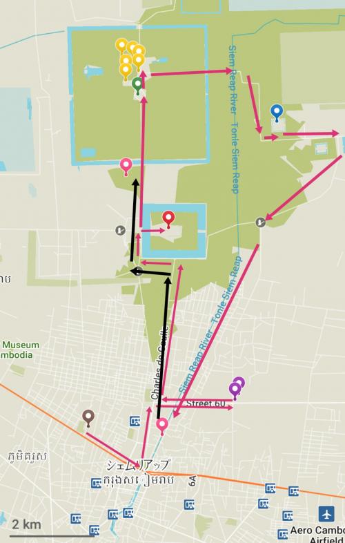 8:45 ~ 9:50 ●Angkor Wat(赤印)