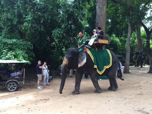 Bayon 入口の正面は象乗りツアーの出発点になっていました(20ドル)。