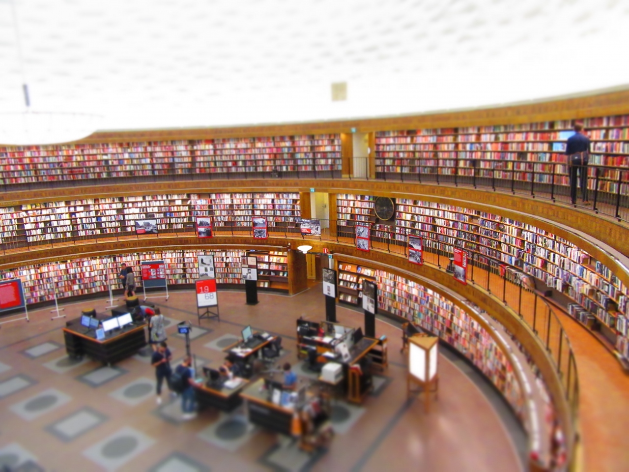 入口の細長い階段を上っていくと円形のホールがあり、そこが開架式の図書館になっています。エントランスホールは吹き抜けとなっていて、360度本に囲まれた風景は圧巻の一言でした。ガイドブックにも載っている図書館なので観光客も多く見られました。この図書館のトイレは男女共有で有料でした。