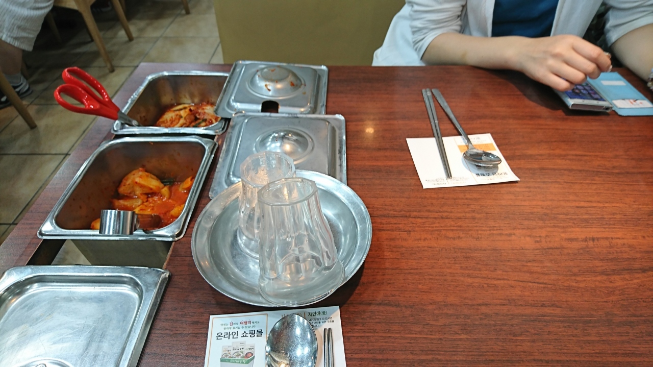 ソルロンタンは牛骨スープなのでテールスープより油っぽい味でしたが卓上の塩・こしょう・一味・キムチで味を自分好みに整えます。