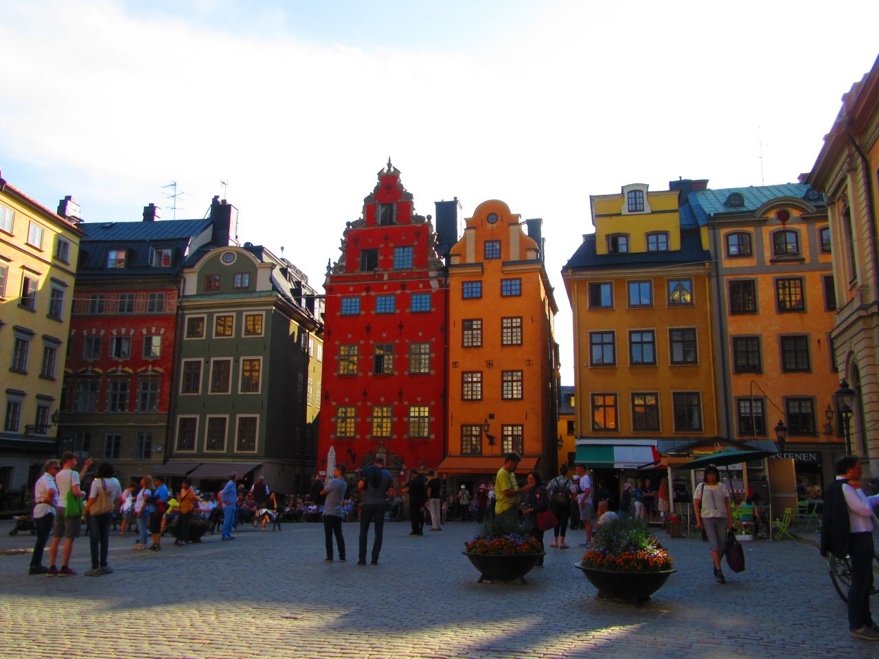 ストールトルゲット広場は、カフェやお土産店などが並ぶガムラスタンの中心エリアだけあって、いつも観光客でいっぱいです。カラフルな建物に囲まれていますが、1520年にデンマーク王クリスチャン2世が、スウェーデンの貴族、高官などの有力者たちを処刑した血なまぐさい場所でもあります。広場にはノーベル博物館もあります。