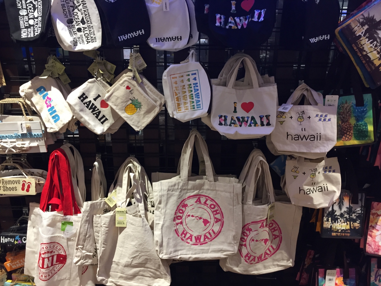 ワイキキのほぼ中心のシェラトンで立地がよく目立つ場所にあったので寄ってみました。基本はコンビニで大きさも日本標準でABCよりは小さくコンパクトですが、お土産になりそうなトートバッグやビーサンなど手ごろな価格でバラマキ土産にはいいかもしれません。