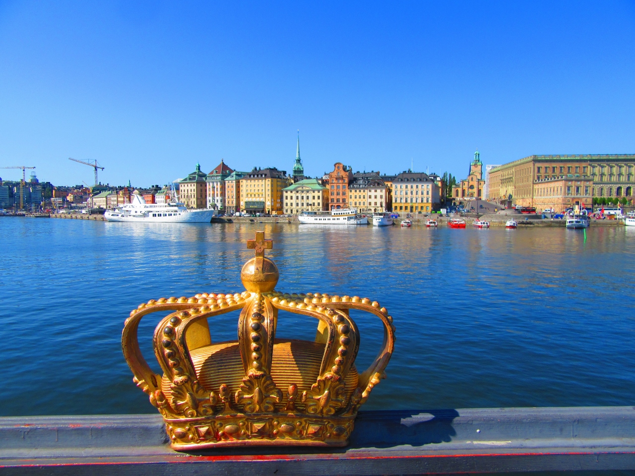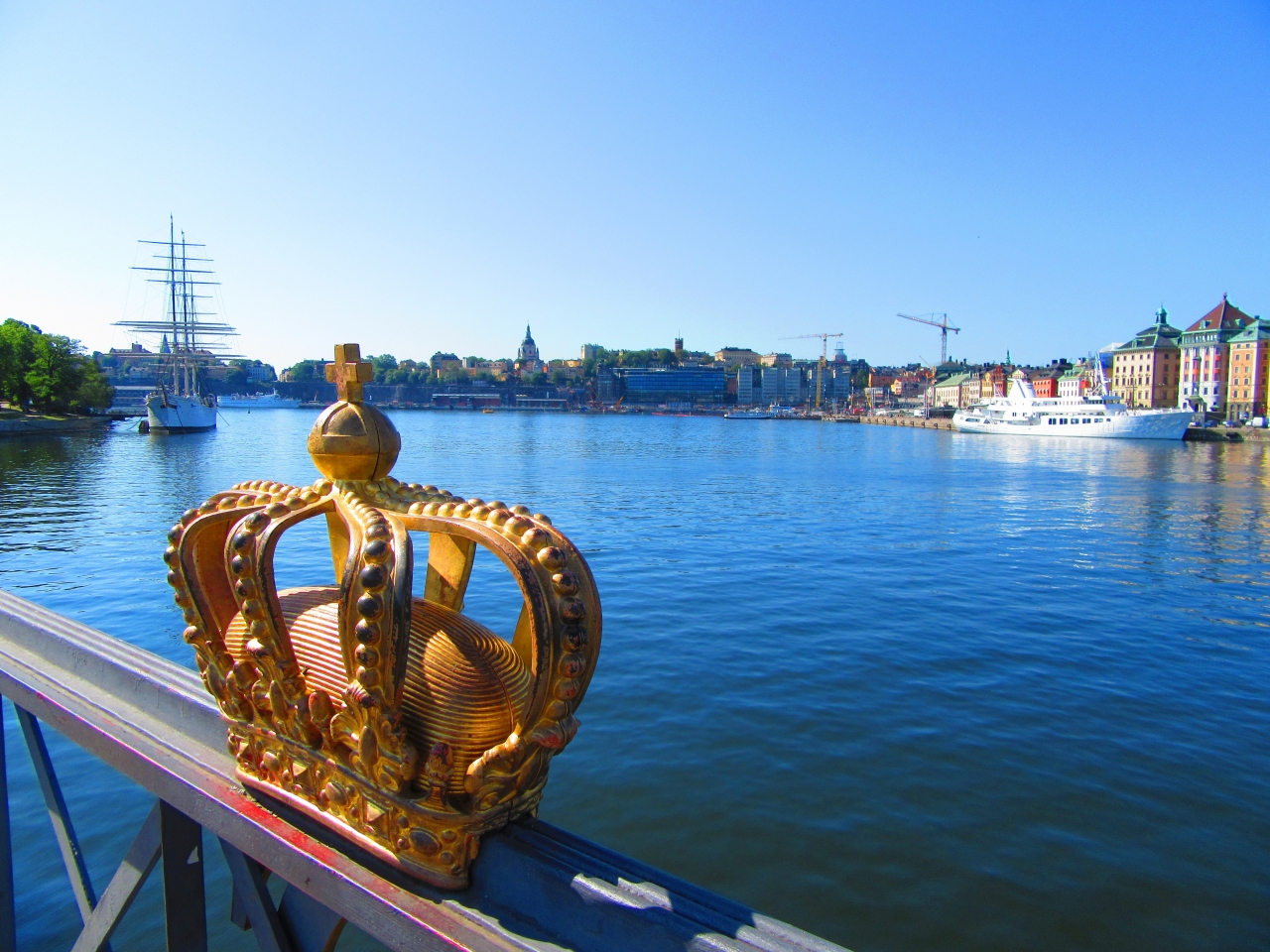 シェップスホルメン島を結ぶシェップスホルメン橋の真ん中には王冠のオブジェが置いてあります。橋から見える街並みはとても美しく、自分を含め多くの観光客がこの王冠の背景に映るストックホルムの街並みやガムラスタンを写真に収めていました。車でも渡れますが、景色を見ながらゆっくり歩いて渡るのも良いかと思います。