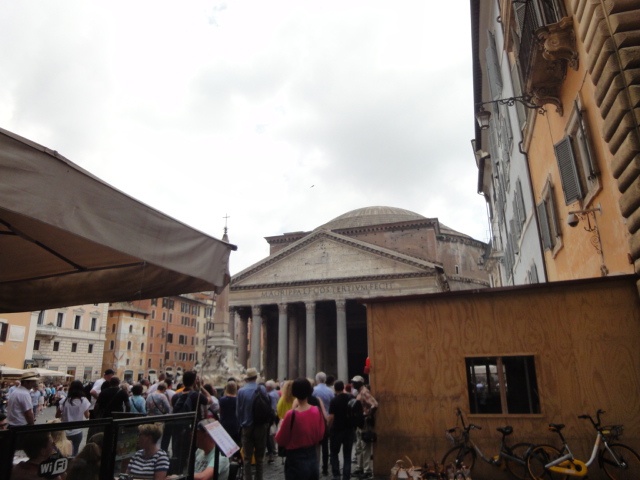 パンテオン前のロトンダ広場は、人が、とにかく多いです。さすが、パンテオンが大人気だけあって、広場もすごいことになっています。立派なオベリスクと噴水があり、周囲はカフェやレストランがいっぱいです。パンテオンを見ながら観光の途中の休憩ができますね。