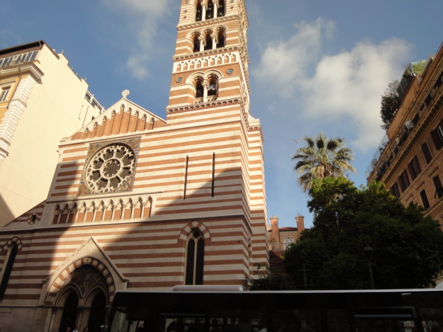 サン パオロ エントロ レ ムーラ教会は、ローマのオペラ座から、すぐのところにある教会です。ナツィオナーレ通りに面していて、縞模様のファサードが、すごく目立っています。搭や装飾の様子もユニークです。たびたびコンサートを行っていて、モーツァルトやスリーテノールなど、いろいろ行われています。
