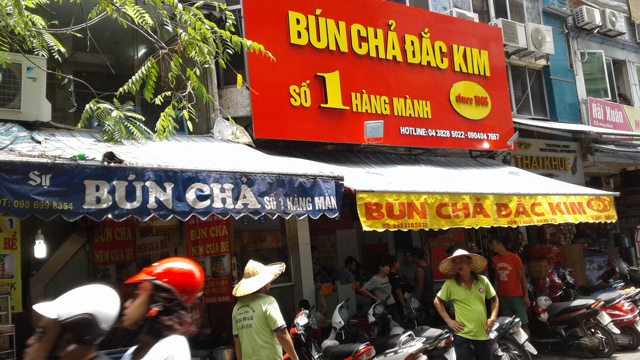 老舗のブンチャー店。ブンチャーはハノイ名物のつけ麺です。