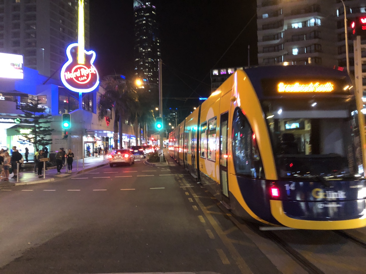 15年振りのゴールドコースト、その当時はこのようなもの無かったので、バス移動が主でした。一日券を買えばバスを含め乗り放題です。南はゴールドコーストの端から北はブリスベンからの鉄道駅に繋がっています。日本国内の路面電車に比べ静かで揺れも無く快適ですよ。縦に長いゴールドコーストはこれで何処へでも行けます。バスと両方使える一日券は10Aドル、改札はホーム上の機械にタッチするだけなので乗り降りでチェックすることはありません。ですが不正乗車は250ドルくらいの罰金です。