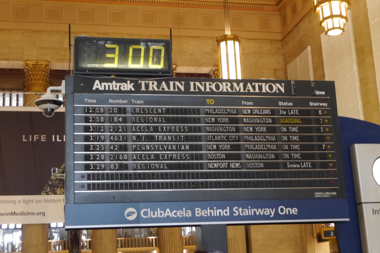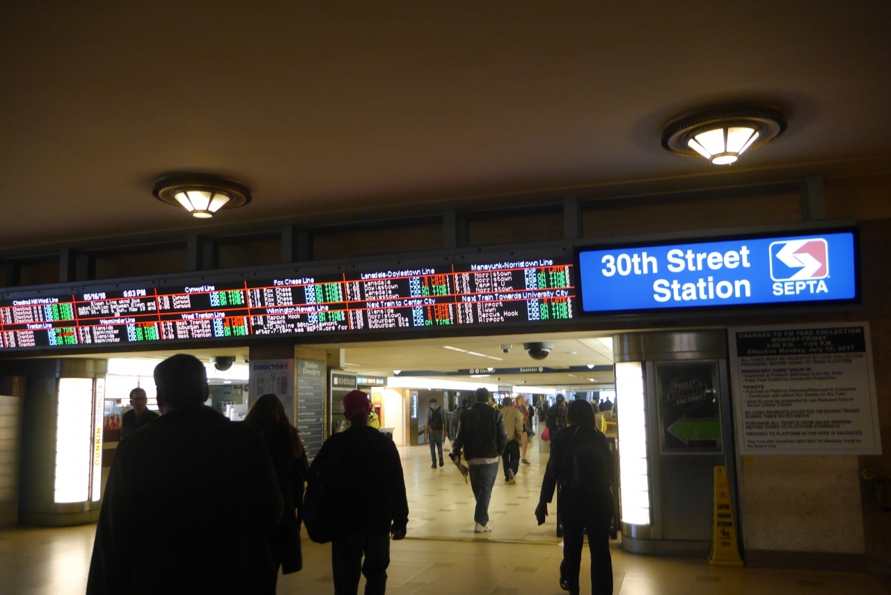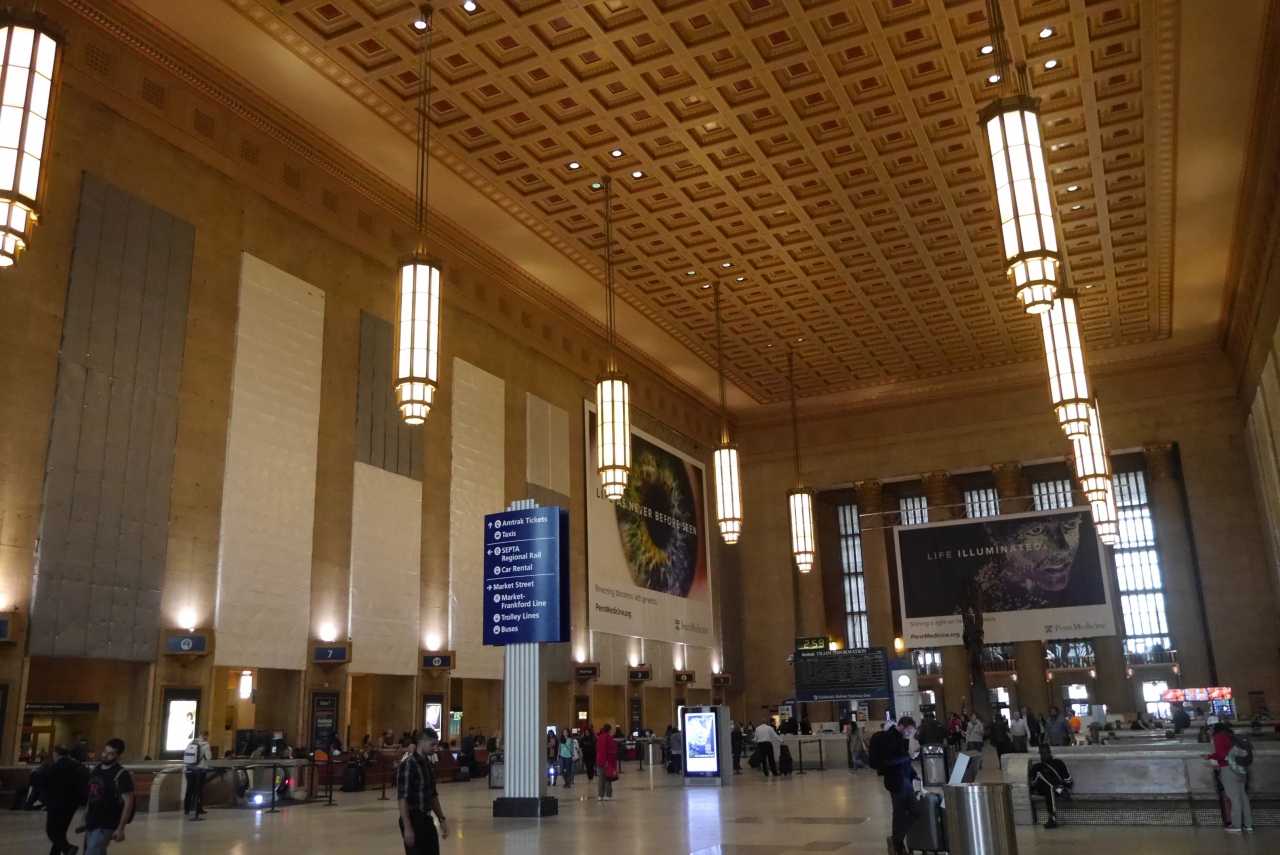 アムトラックが停車し、近郊線、地下鉄セプタが通るフィラデルフィアの中心駅です。観光の中心地とはスクールキル川を挟んでいますが、アムトラックの乗車券を持っていると、そのままセプタのサバーバン駅まで乗車できます。