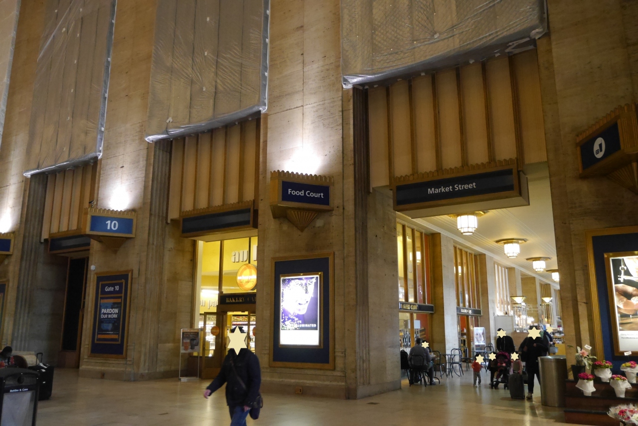駅舎は重厚な造りで巨大な柱が立ち並び、構内は天井が高く、広大な空間を作っています。セプタの駅は構内通路で繋がっており、マーケットやフードコートもあります。