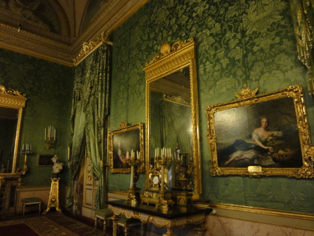 パラティーナ美術館で、順路どおりに絵画を堪能して、豪華なシャンデリアの部屋に出たと思ったら、あとは、ひたすら、いっそう豪華な部屋が続きます。赤や緑で統一された部屋とかあって、面白いと思います。さすがに内装や調度品が、豪華で素晴らしいです。