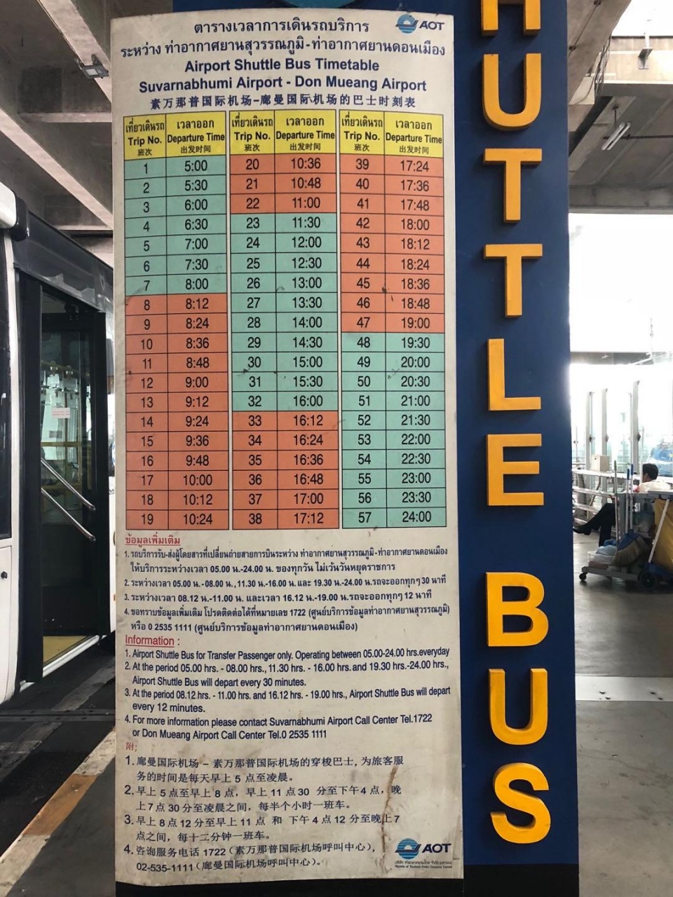 (2)スワンナプーム国際空港(2F Gate3前)からドンムアン国際空港行き無料シャトルバスに乗る。
