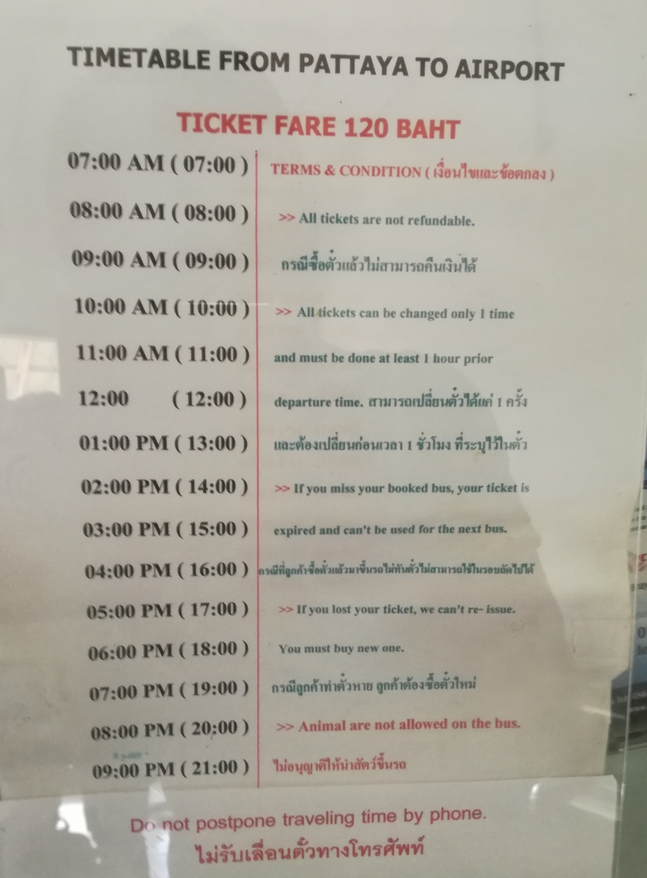 2018.6に、パッタヤSouth(Jomtien)からドンムアン国際空港に行く時に利用したバス情報です。