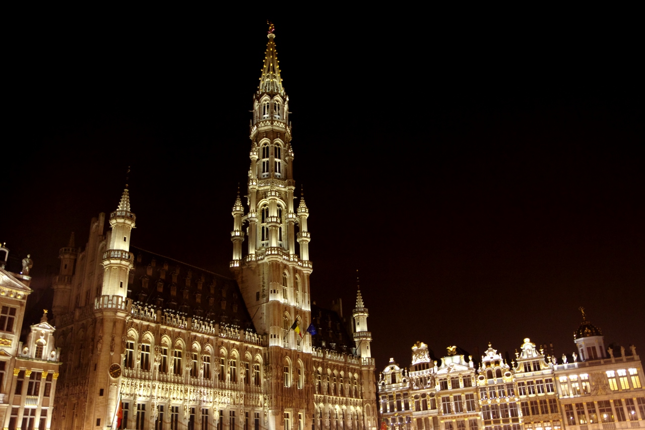そしてグランプラスは世界最高の夜景とも言われたりしますが、その言葉通り夜景もすごくきれいでした!撮影する際は広角レンズがあるとさらに面白いと思います。ただ夜景も良いですが、晴れた日の早朝もおすすめです。夜景時と違い、店はほとんど営業してなく、また出歩いている人も少ないので静かに見て回ることができます。
