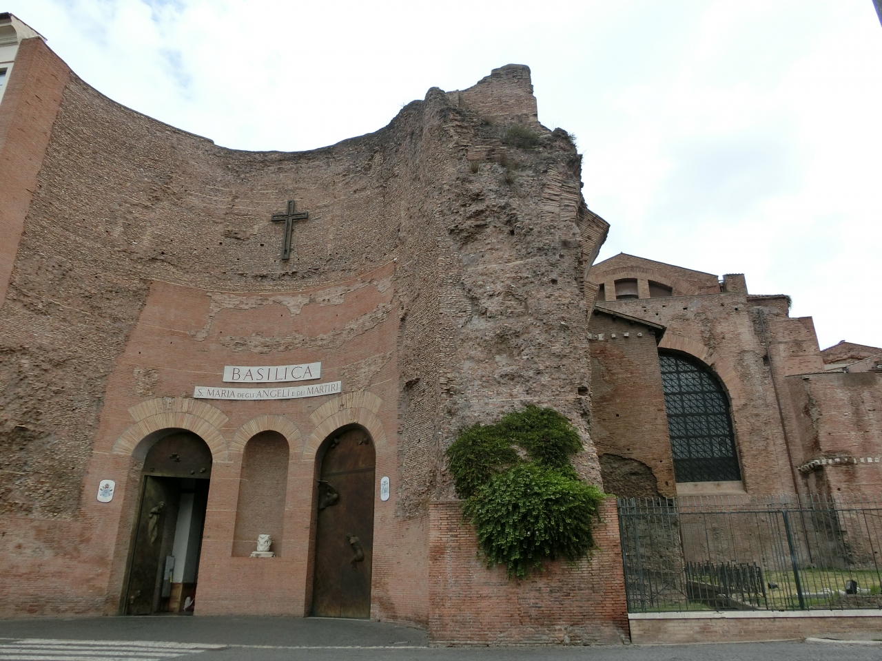 ディオクレティアヌス大浴場跡をミケランジェロがリノベーションした教会です。外観がとても素敵でした。クーポラ(天井窓)には美しいステンドグラスが!カメラでズームしてみないと気付かないようなものなのですが、とても素敵でした。