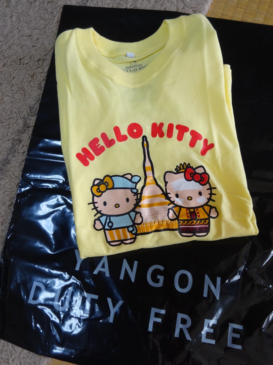 出国審査後のエリアにも、レストラン、両替、土産屋などありました。土産屋でミャンマー限定キティちゃんTシャツが売っていてとてもかわいかったので購入しました。US14ドルでした。