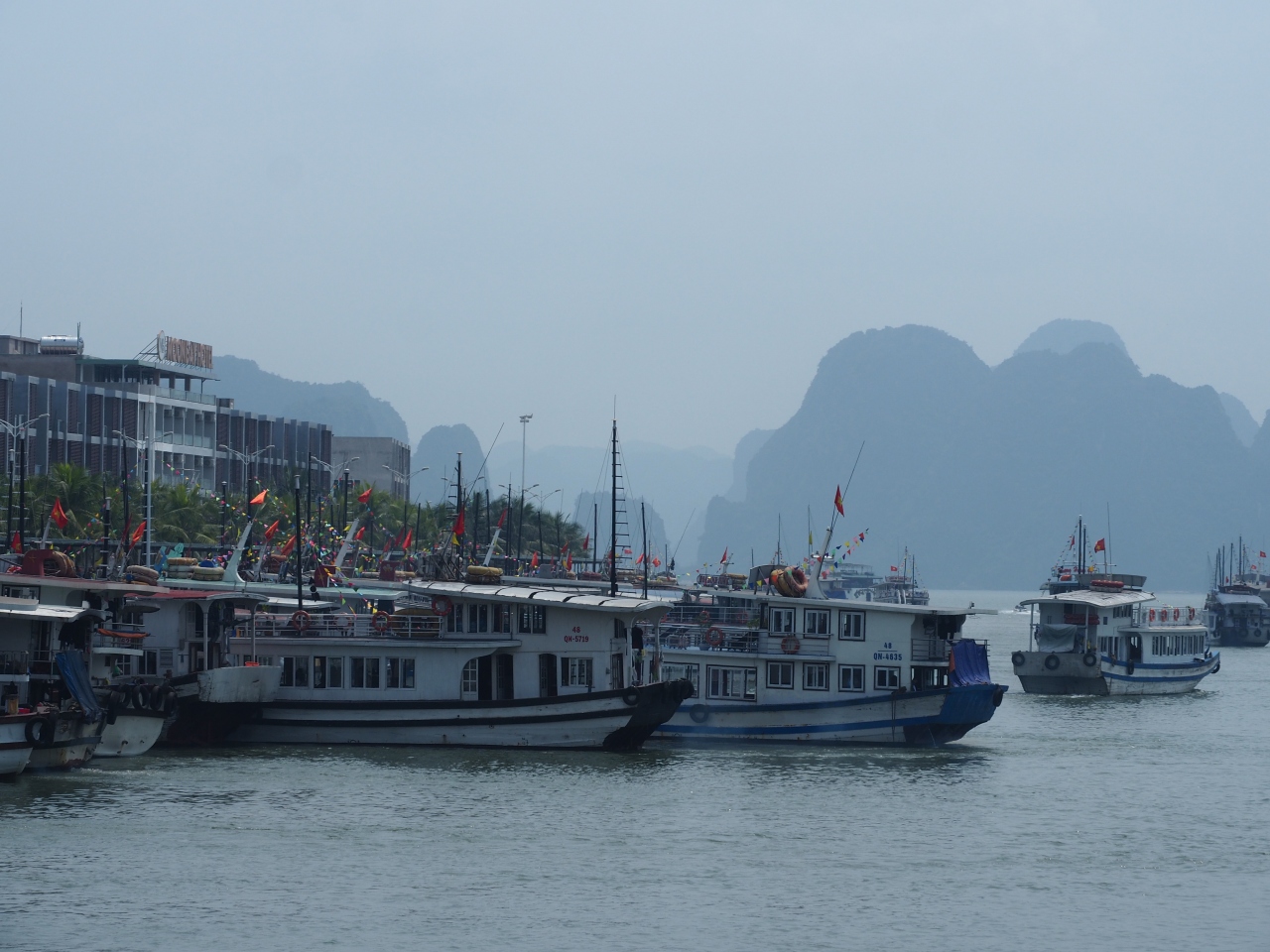 ハロン湾はさすがに海の桂林と呼ばれるだけに景色は最高です。現地でも船に乗るだけのツアーはあるのでしょうが、食事と一緒をお奨めします。まずは、食事をしながら、湾内の奇岩を見て、最後に洞窟に行くのが定番の様ですね。
