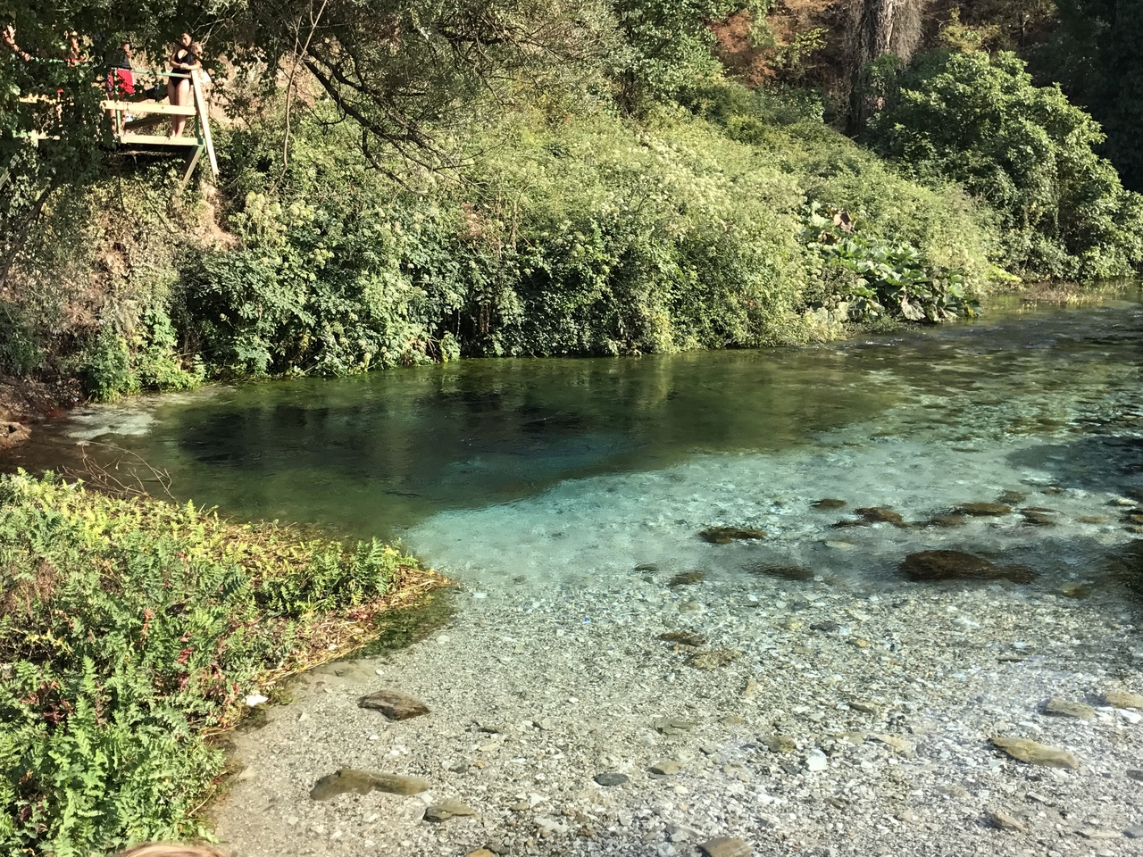 アルバニア旅行の際に訪れたブルーアイ。本当に青くてキレイでした。湧き水ですが深さがどのくらいあるのかは未だに不明。(ダイバーが潜っても湧き水の逆流で底まで到達するのは無理らしい。) 私も実際に13度くらいの冷たい水の中に入ってみましたが、水圧がすごくて湧き水の中心まで泳ぐのは到底無理でした。