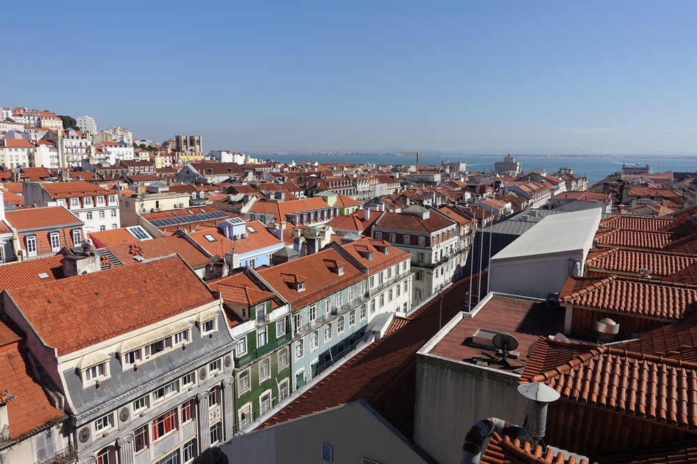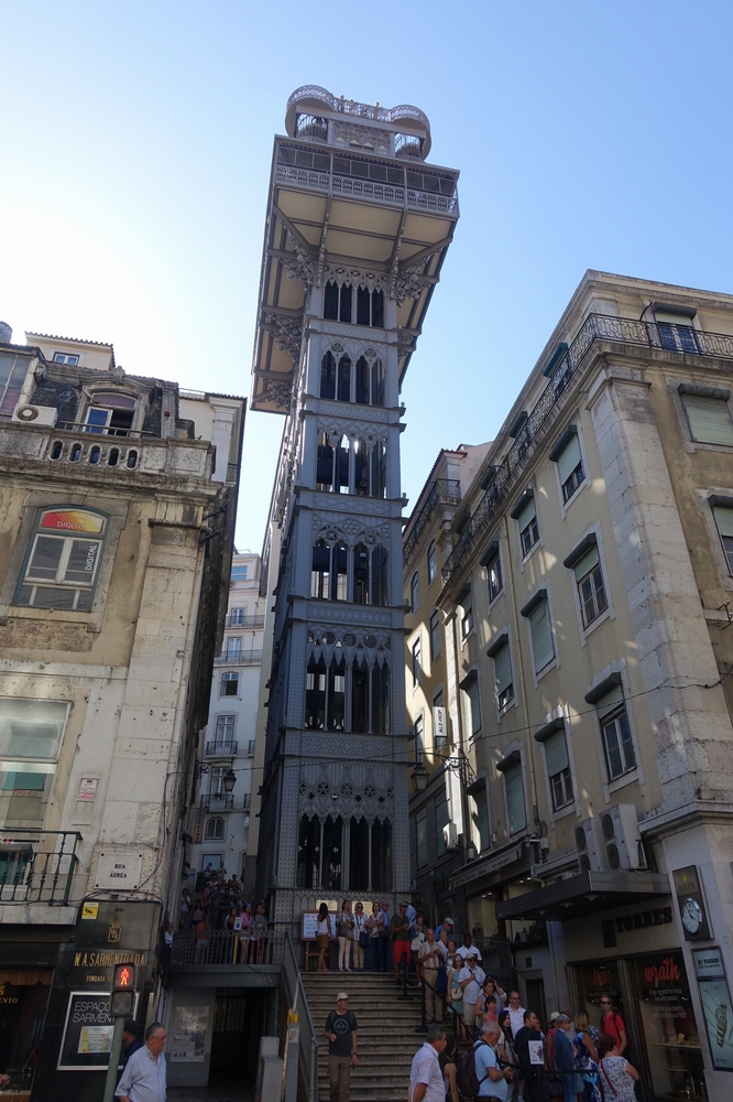 低地のバイシャ地区と西側の高台とを行き来するには、サンタジュスタのエレベーターがあります。エレベーター自体が観光名所になっているので上りエレベーターは大混雑してました。高台へはケーブルカー・グロリア線など別の方法で上り、エレベーターで下りるというルートにするといいと思います。下りエレベーターはすぐに乗れました。