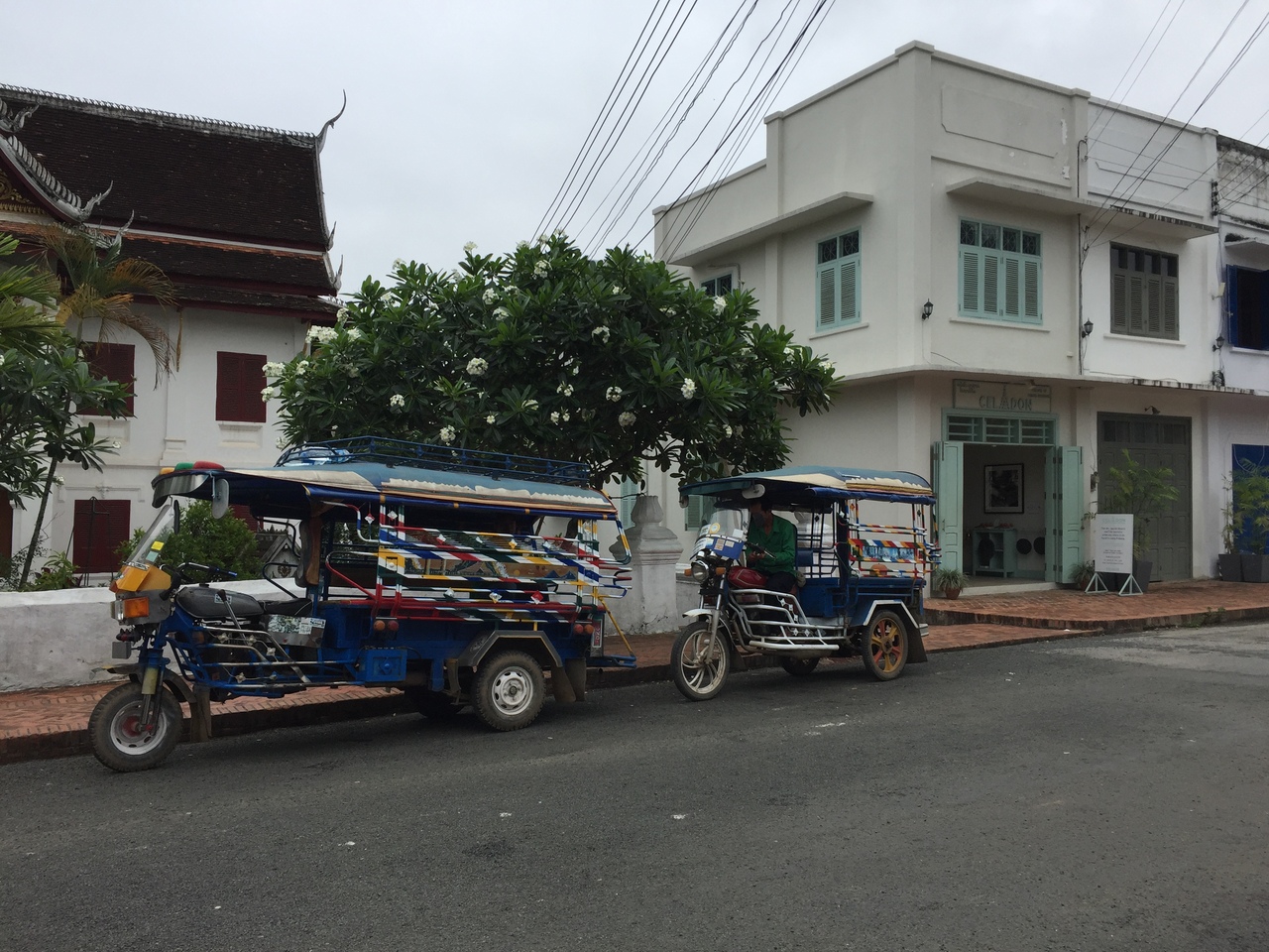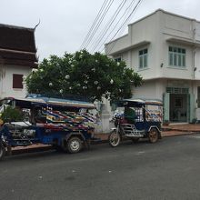 クアンシーの滝に行くのに声かけました。15万で行ってくる人を探していましたが。トゥクトゥクでなくソンテウ風なトラックのお兄さんが見つかりました。帰り道にスコールに合いました。トラックの荷台には雨よけのビニールが付いていたのでずぶ濡れは免れました。トゥクトゥクでも雨よけが付いていると安心。