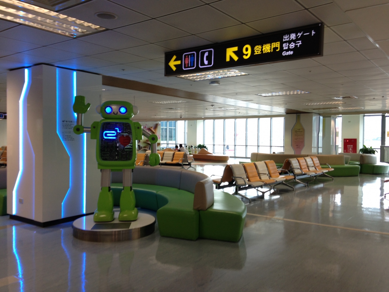 パイナップルが人気で少なくなっているか補充中でした。航空機遅延で2時間もいたら途中でフルーツがなくなってマカロンが出ました。マカロンなんて出るんだーとうれしくなりました。遅延があると搭乗時間変更の案内が流れます。混んでいたので相席になるほどでした。