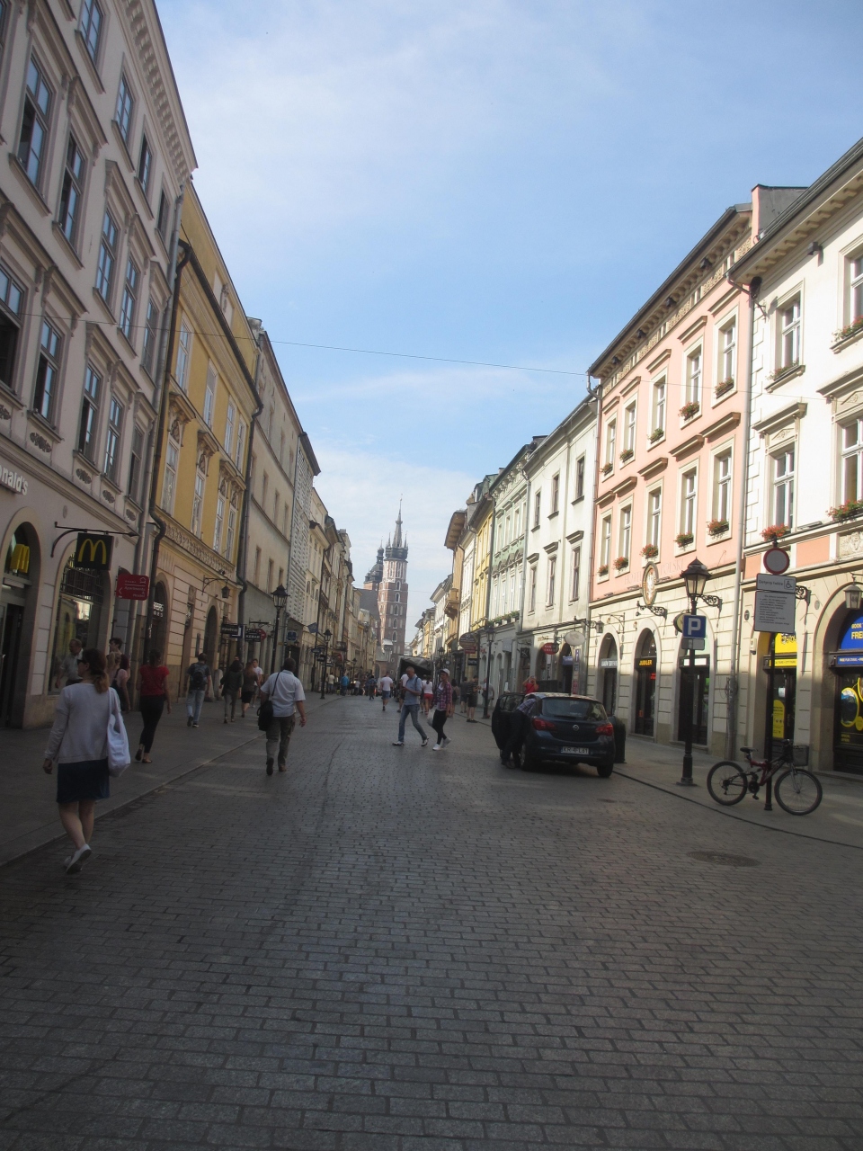 クラクフ旧市街で、フロリアンスカ門から中央市場広場まで続いている通りです。宿泊したホステルがこの通りに面していたこともあり何度も行き来しました。いつ歩いても観光客が多かったです。飲食店のほか、ビールやワインを買えるお店などもありました。
