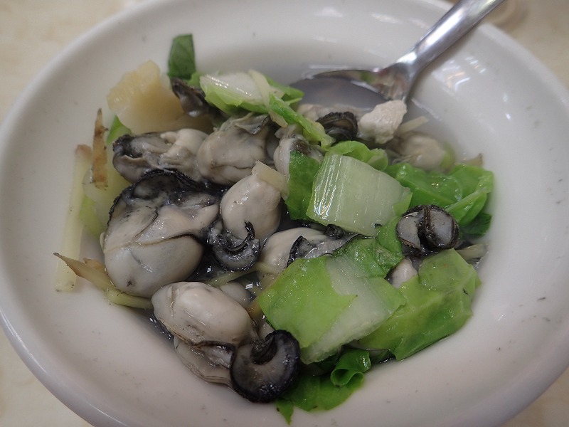 カキ入りスープ70元、カキのにんにく炒め140元、カキオムレツ70元といった具合だった