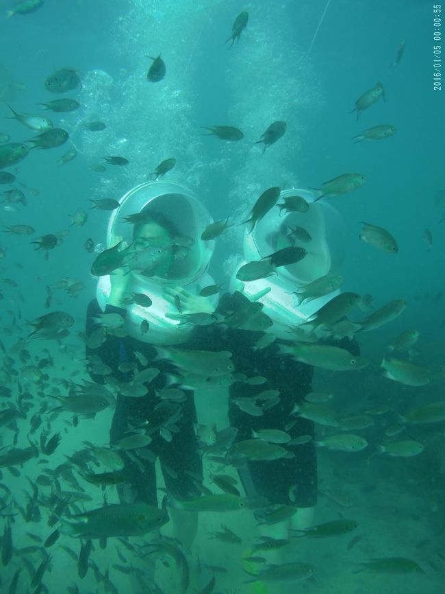 中学生の娘を連れて行きました。海底ウォークは少し海水が濁っていて、カラフルな魚が見られる訳ではないですが、海底を20分歩いたことはとても楽しかったよいです。