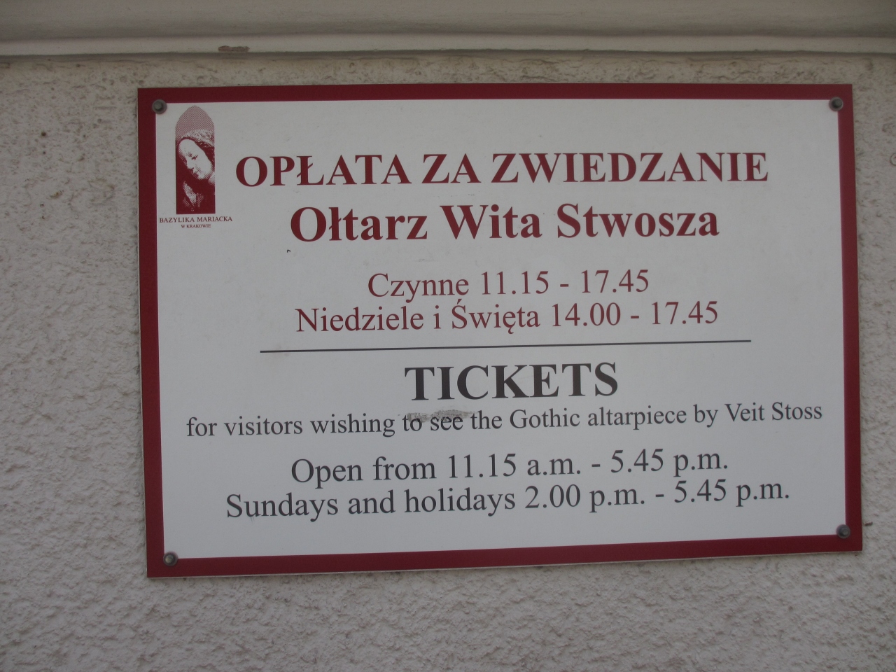 聖マリア教会の正面に向かって右横の道を少し進むと右手にあります。私が行ったときには何人かが並んでいらっしゃったのですぐに見つけることができました。午前11時15分からと割と遅い時間から始まるのでご注意ください。