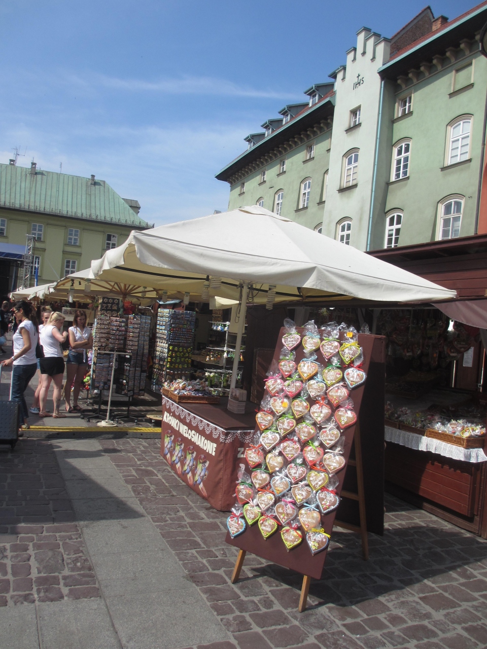 クラクフの旧市街を散策していた際にたまたま行きました。聖マリア教会の裏側(中央広場と反対側)にある中央広場と比べるととても小さな広場です。いくつかの土産物店が並んでいましたが残念ながら私が買いたくなるようなものは特にありませんでした。