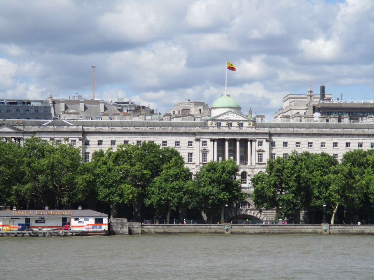 地下鉄のテンプル駅からすぐです。現在の建物は、18世紀末に、ウィリアム。チェンバーズが建てた新古典主義様式の建築物です。白亜の宮殿に緑のドームが乗っている華麗な建物で、以前王妃の宮殿として使われていたというのも納得できる華麗さです。
