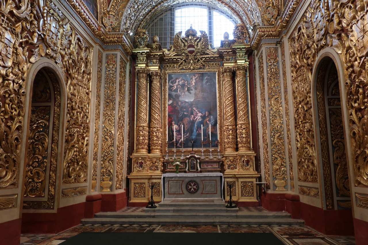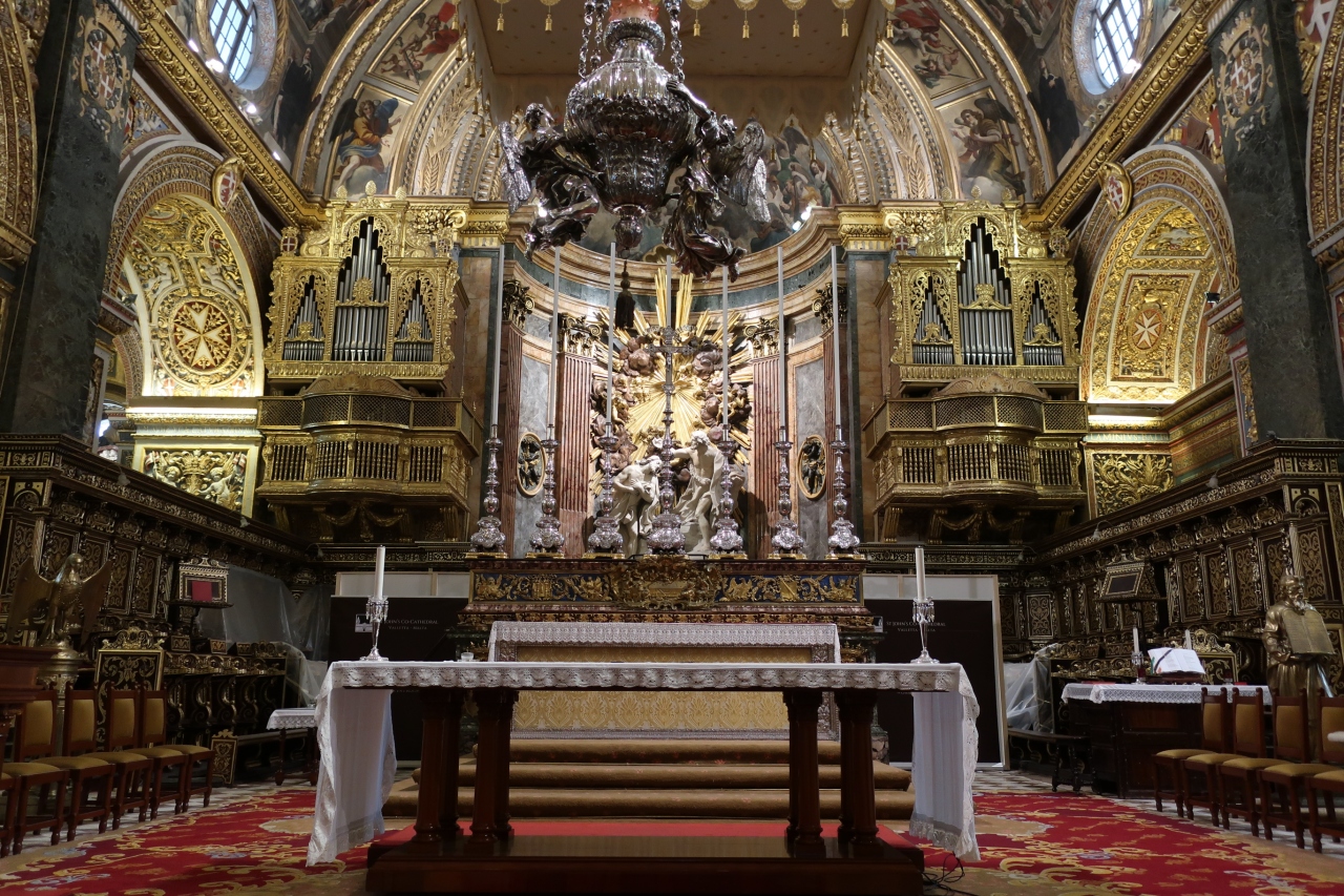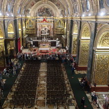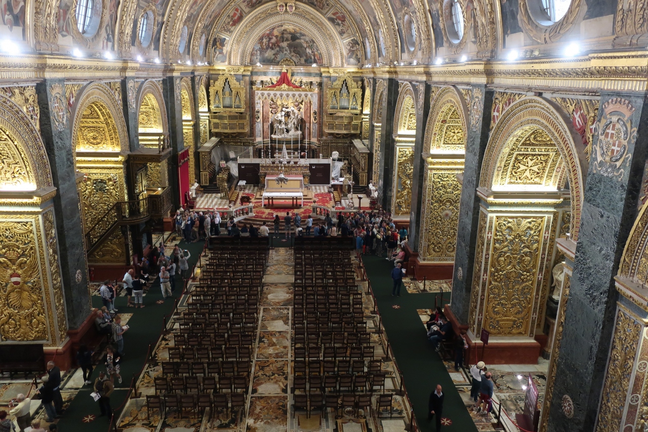 内部へ入ると、豪華な金細工の装飾が目に入ります。どこを見ても、豪華!。側面には、ドイツ、フランス、イタリアなどの礼拝堂が。床には騎士団の墓碑が敷き詰められています。ヴァレッタへ行くことがあれば、ぜひ訪れて欲しいです。