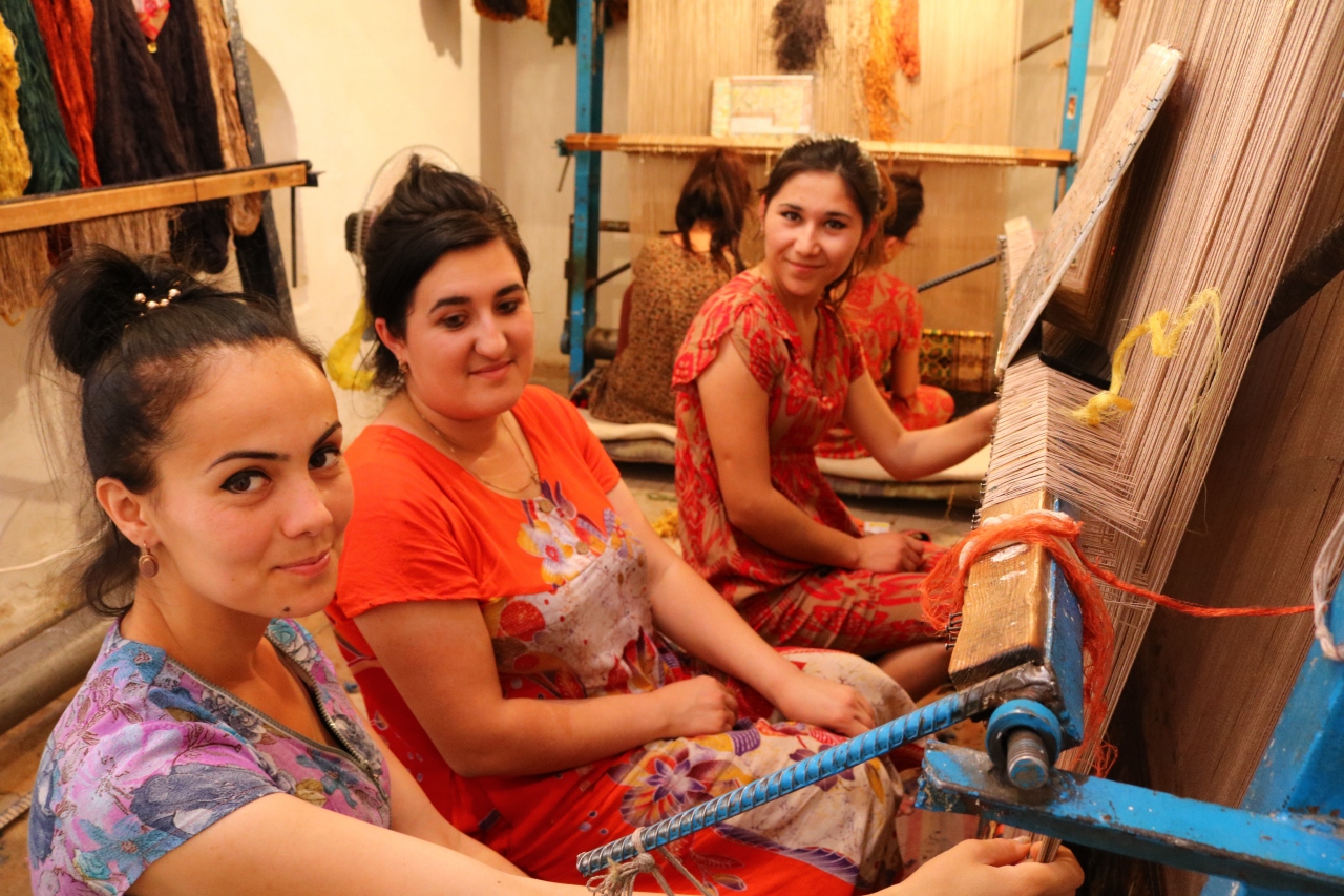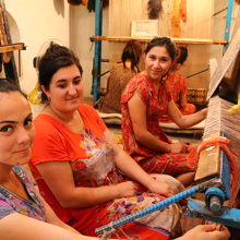 パフラヴァン マフムド廟の近くにあります。数人の女性たちが織機や手縫いでスザニを縫っているところを実演しています。ただここでは商品を買える感じではなく、あくまで実演の場のようです。押し売りのない点は良かったです。