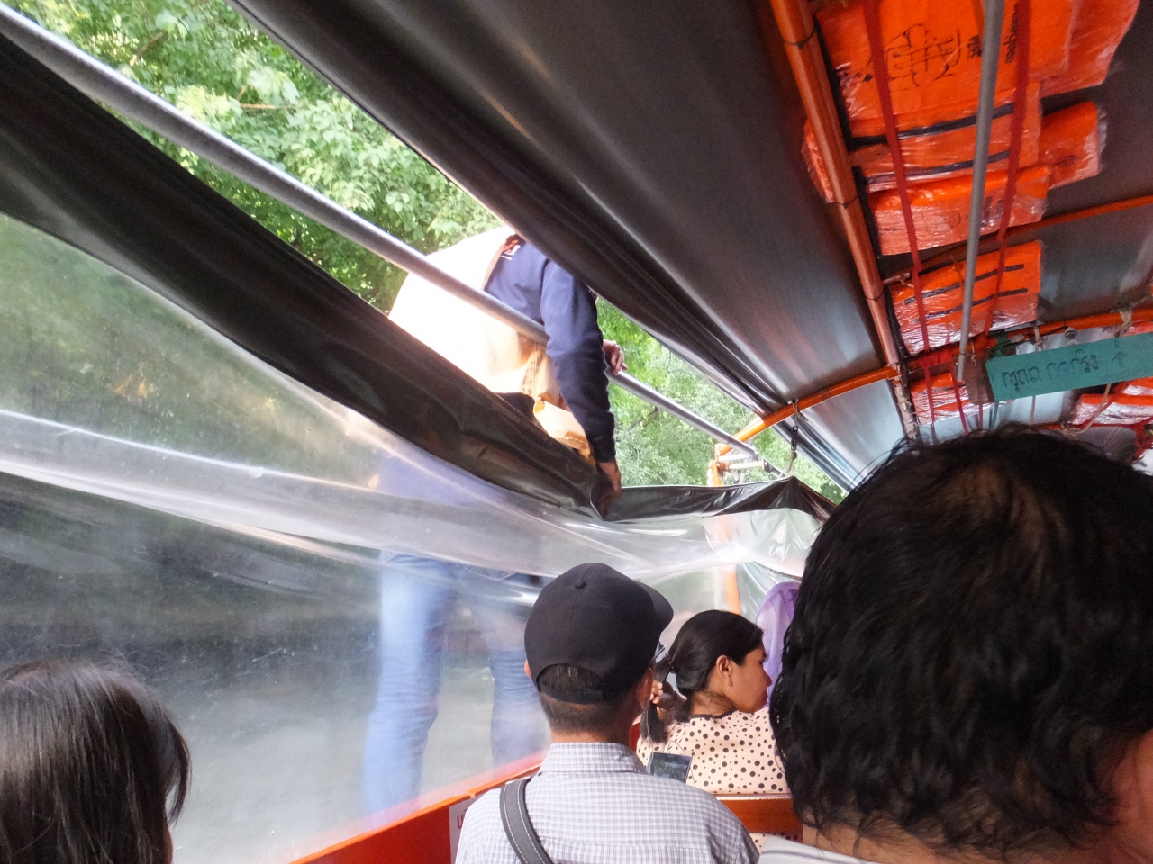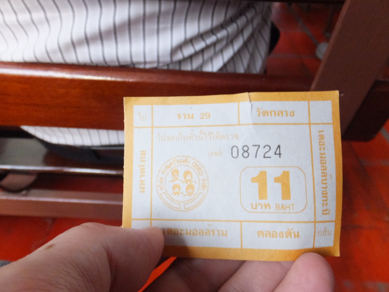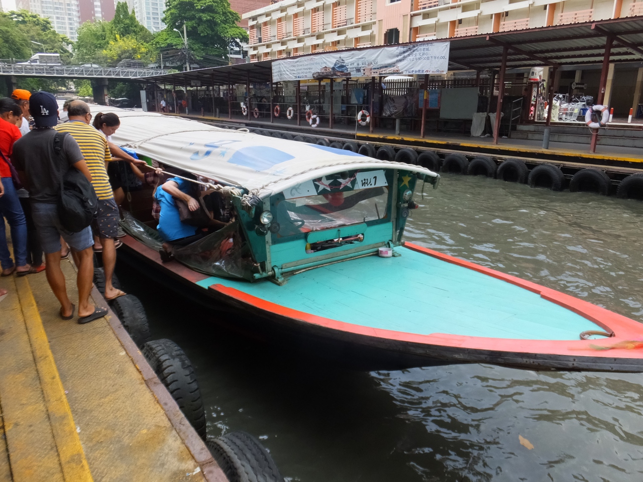 MRTペチャブリー駅の近くに宿泊したので、アソーク船着き場から乗って、プラトゥーナーム船着き場で乗り換えてワットスラケート近くの終点まで、渋滞知らずであっという間に行けました。船着き場に料金表が掲示してあって、船に乗って船員に行先を告げてチケットを買います。