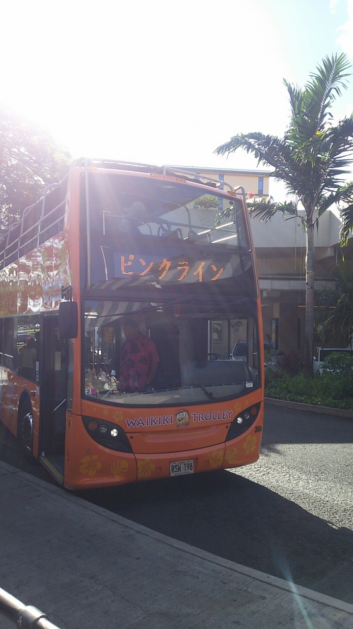 ワイキキDFSからワイキキの主要ホテルを周り、アラモアナショッピングセンターまで行くのが、ワイキキトロリーのピンクラインです。