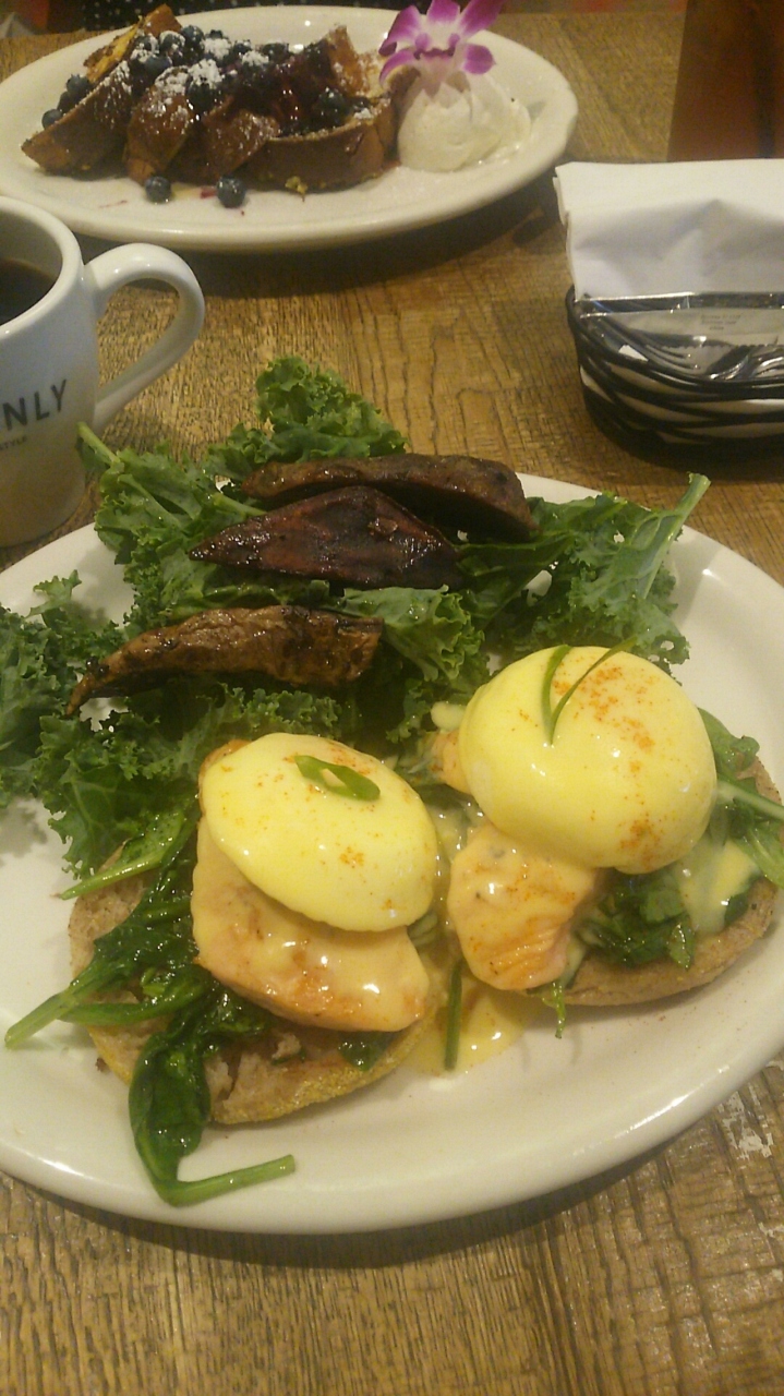 エッグベネディクトとフレンチトースト、ドリンクはコーヒーをいただきました。