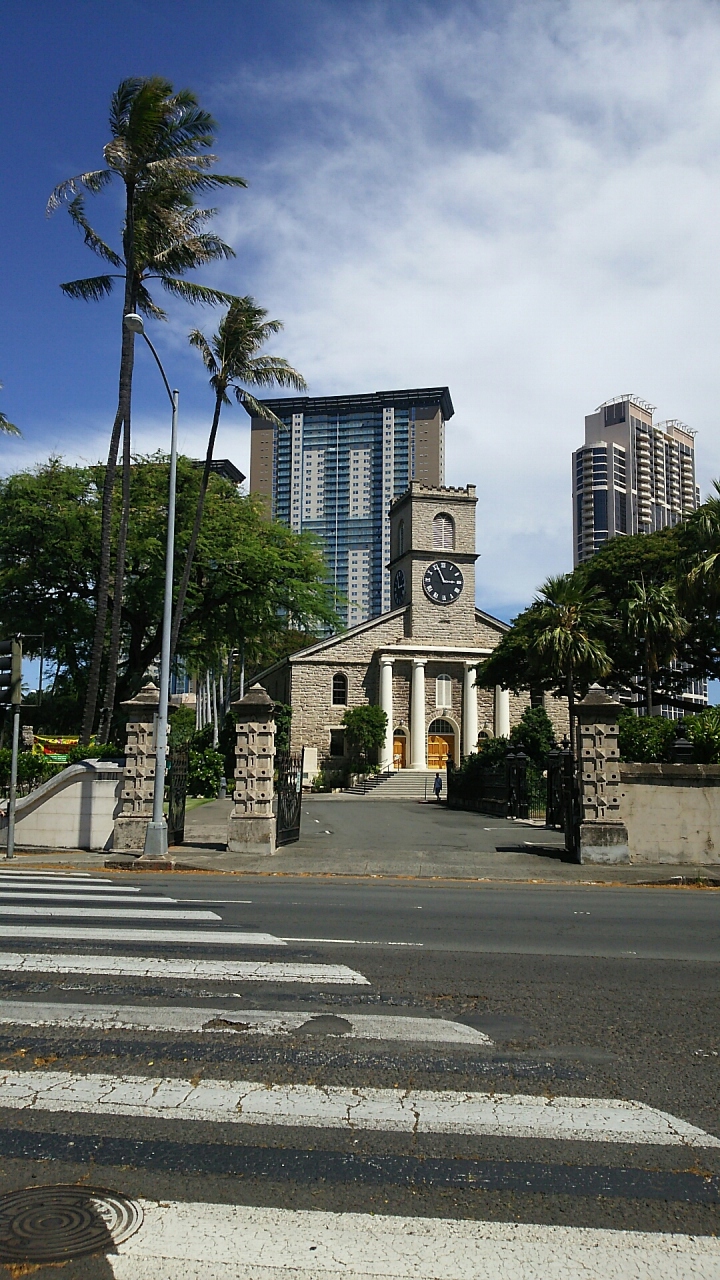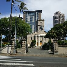 カメハメハ大王像や、イオラニ宮殿からもすぐの○○教会です。