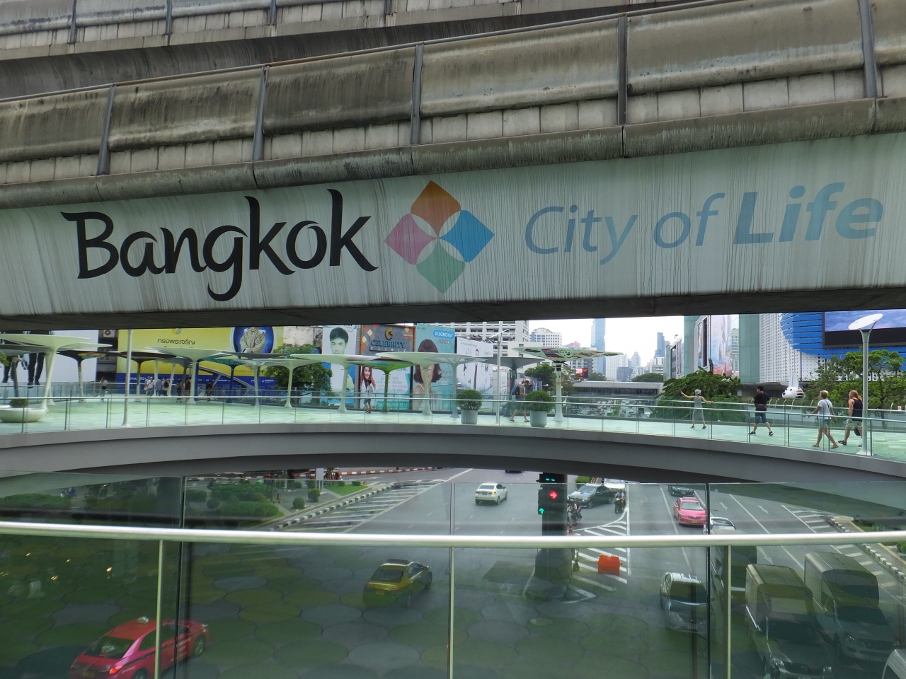 BTSのシーロム線とスクムウィット線の乗換駅です。同一方向が同じホームで乗り換えられるのが便利でした。この駅で出ようとすると、少々複雑でなかなか目的の出口から出られないのが難点でした。周辺はショッピングエリアでかなり混雑してました。