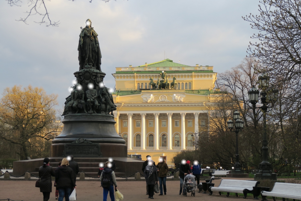 公園の中央にはエカテリーナ像があり背後にはアレクサンドリンスキー劇場が聳え立っているので、その合わせ景がなかなか良かった。