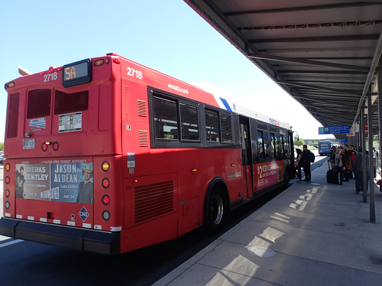 #5Aのメトロバスが空港から市内への最安手段だと思います。空港からL'Enfant Plaza(モ-ルの南約500m)まで約1時間、7.5USDで行けます。空港での乗り場は「カーブE」という場所で、ターミナルを出てすぐの道路を横断した場所にあります。「カーブ」という名前から曲がった状態を想像していたのですが、何のへんてつもないただの真っ直ぐな乗り場でした。料金は車内で支払機にお金を入れて支払います(カード利用不可)が、注意点として、支払機はお釣りが出ないため、他の乗客に両替してもらう(運転手は両替してくれません)か、釣りを諦めるしかありません。私の場合は8USDを払って50セントは諦めました。乗車前に1USD単位の現金と50セント相当の硬貨を準備しておく必要があります。アメリカという国はこういうことに関してはいつまでたってもお粗末だなぁと改めて感じました。