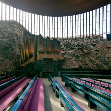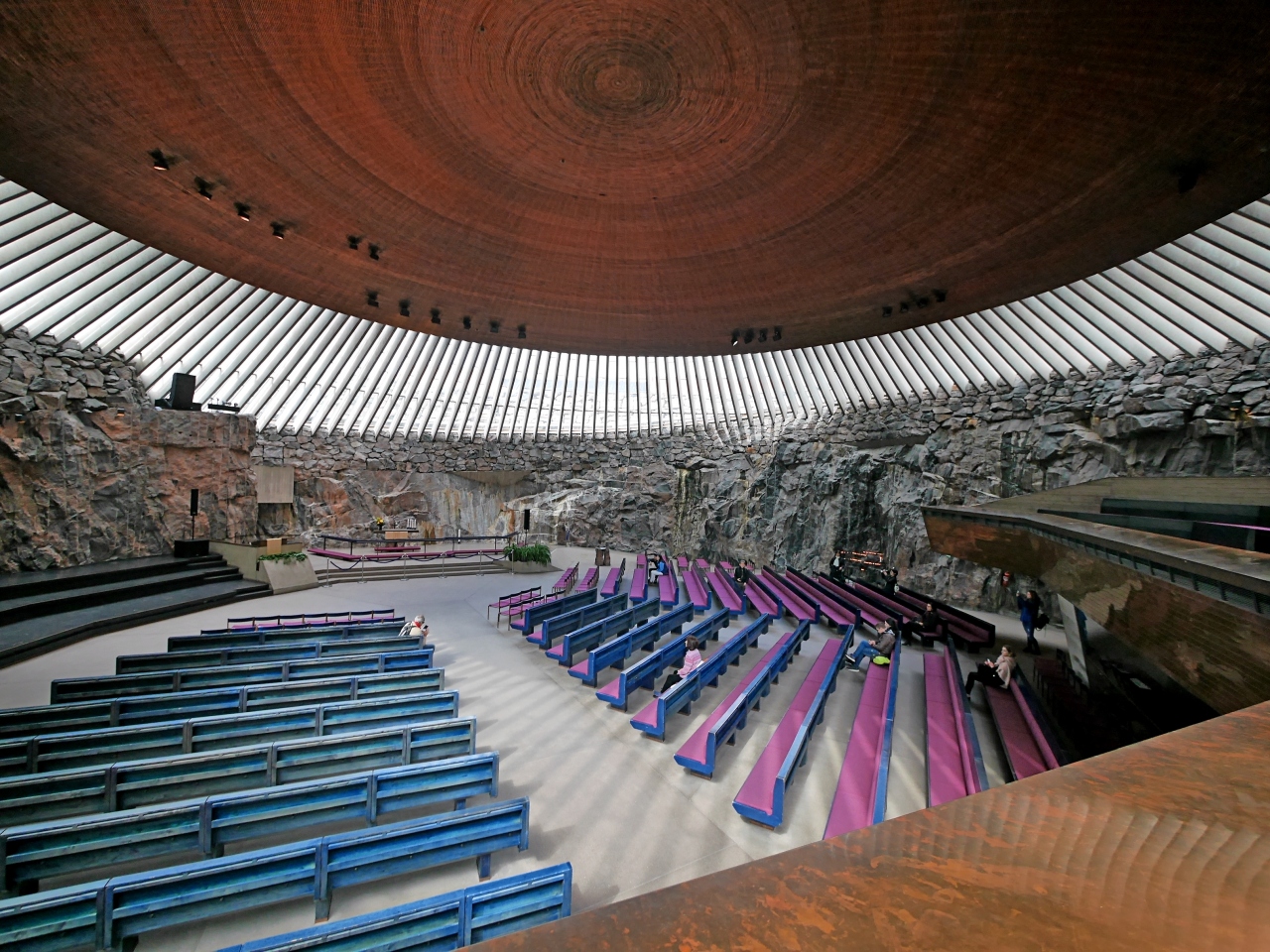 テンペリアウキオ教会はヘルシンキ観光定番のところであるが,2017年8月に行ったときには無料であったが,今回3ユーロと有料になっていた.まあ維持費がかかるので当然といえば当然だが..教会に行ったら後の岩山に登って屋根を見るとよい.モレーン(氷河の作った丘)をくりぬいて作ったことがよくわかる