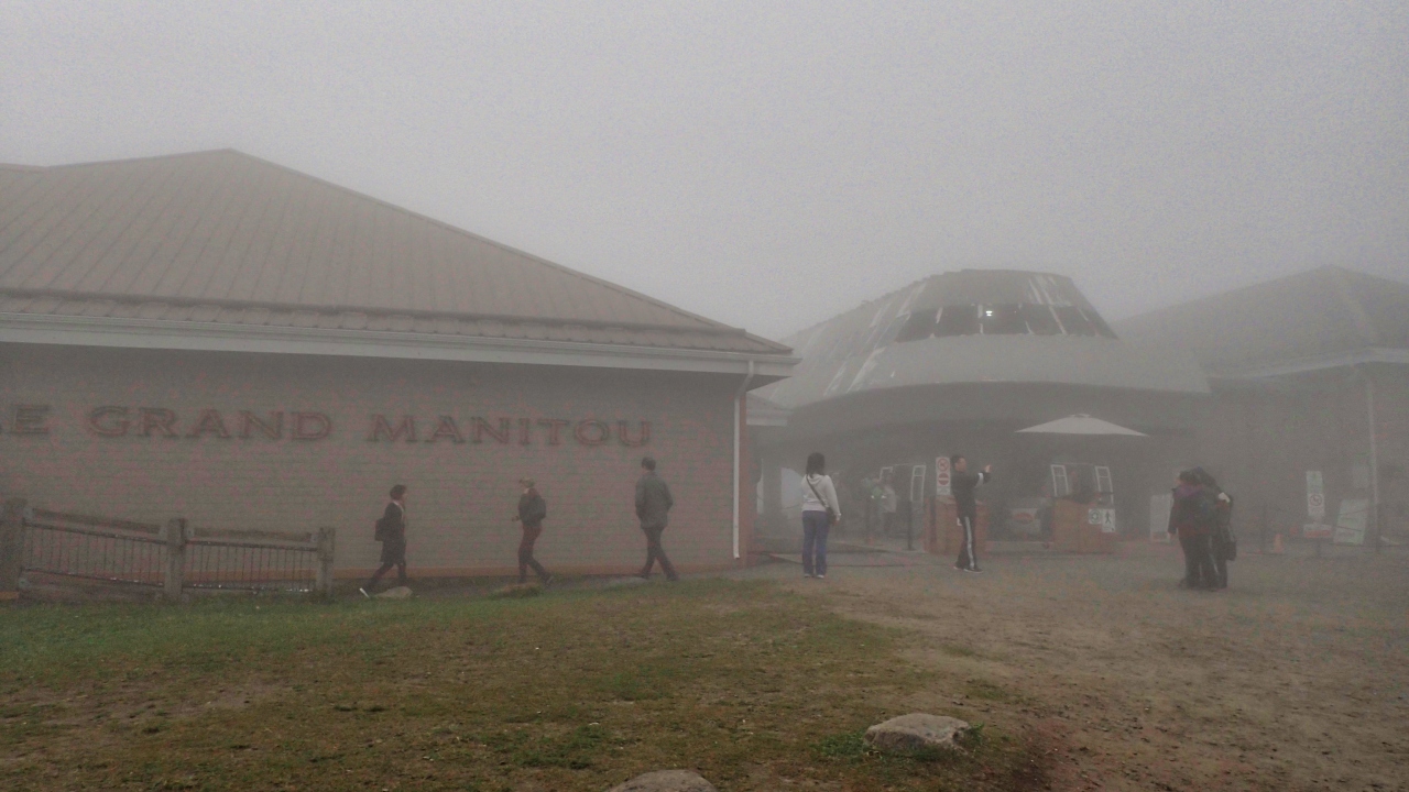 天候もいまいちだったので、トレイルは使わずに一気に山頂を目指した。チケット売り場は混んでいたたものの回転早かったので、それほど待ち時間はなく搭乗できる。