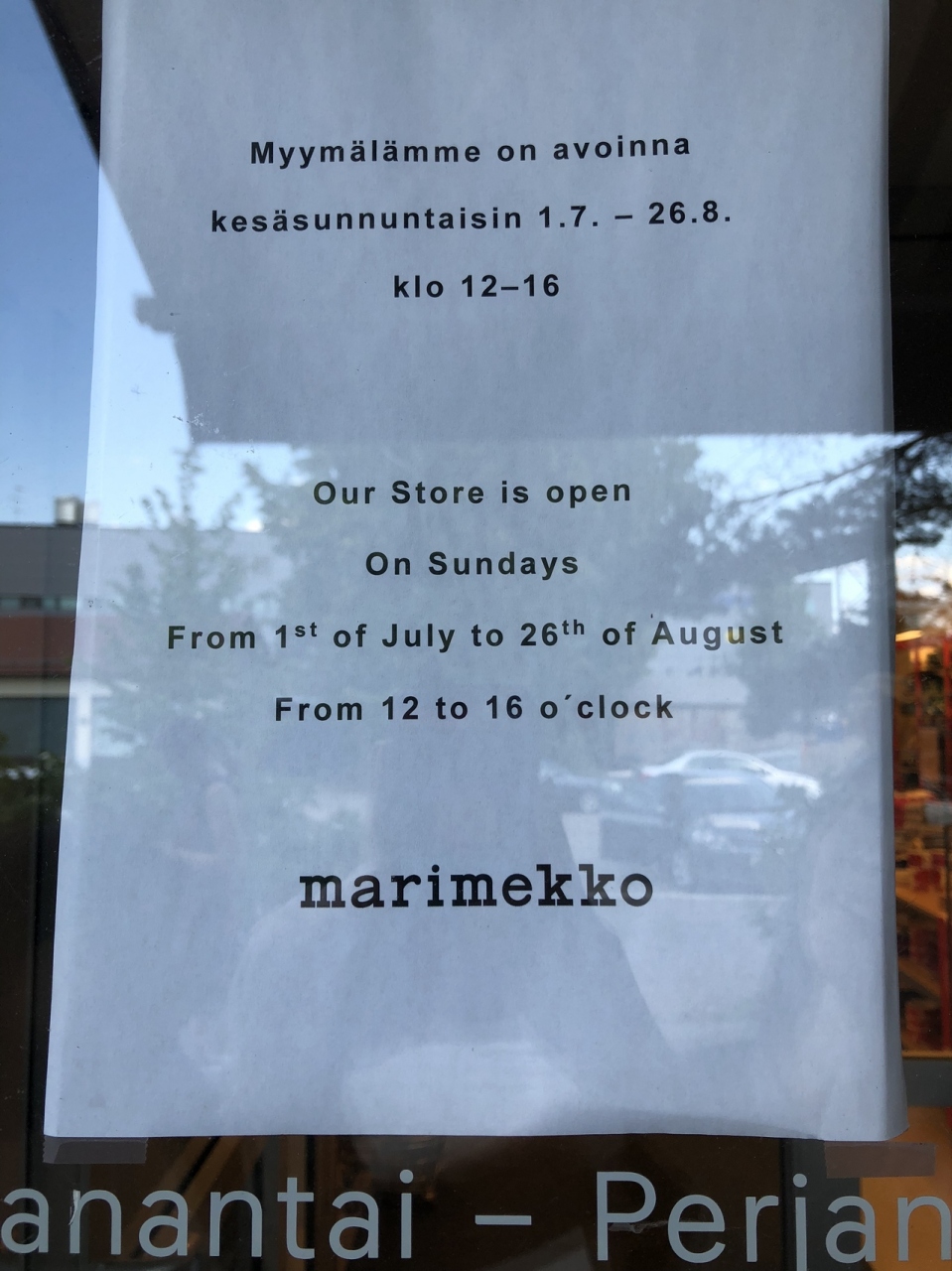 2018年8月26日までは日曜日の12時から16時も開店していて、日曜日にこの店舗で100ユーロ以上購入するとマリメッコロゴの白いエコバックがもらえます。