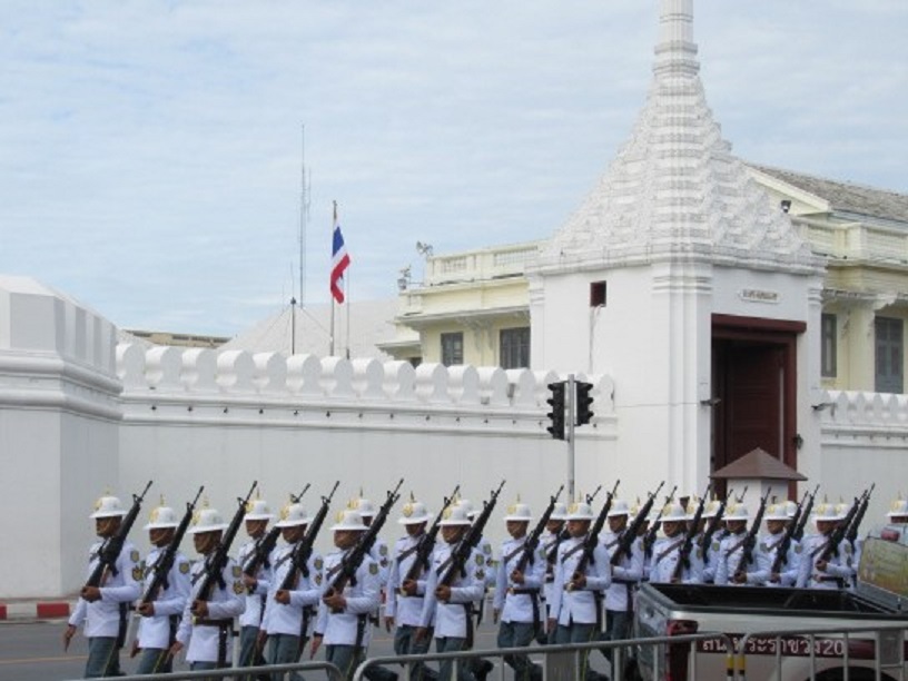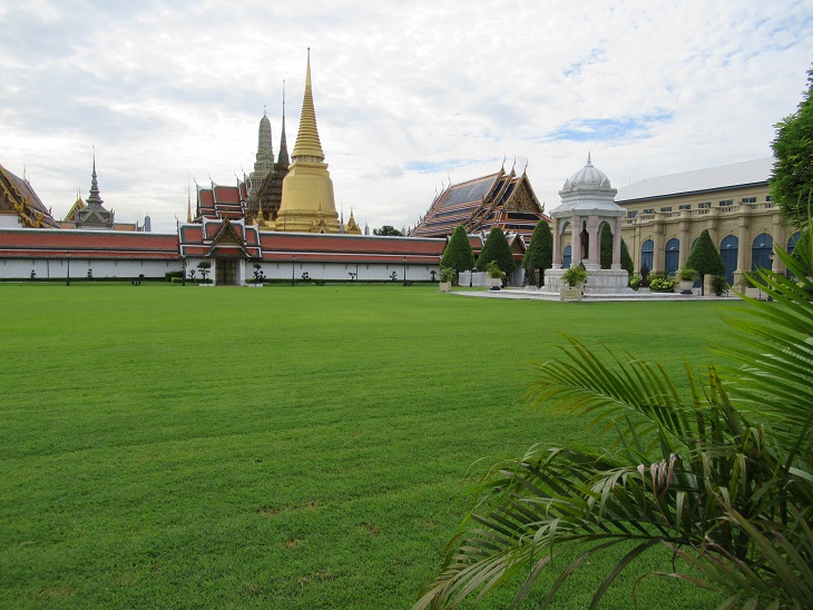 バンコクで一番人気の観光スポットである「ワットプラケオ」に行ってきました。一般の方たちが寺院内に入れる門としてはここだけのようです。当日は8:30開門でそれより早く来ましたのでスムーズに入ることができました。入ると綺麗に整備された芝生、その奥にワットプラケオが見えます。入場料は500バーツでチケット売り場と入口はこの先約100mくらい先にあります。絢爛豪華なタイを代表するワットプラケオに魅了するでしょう。