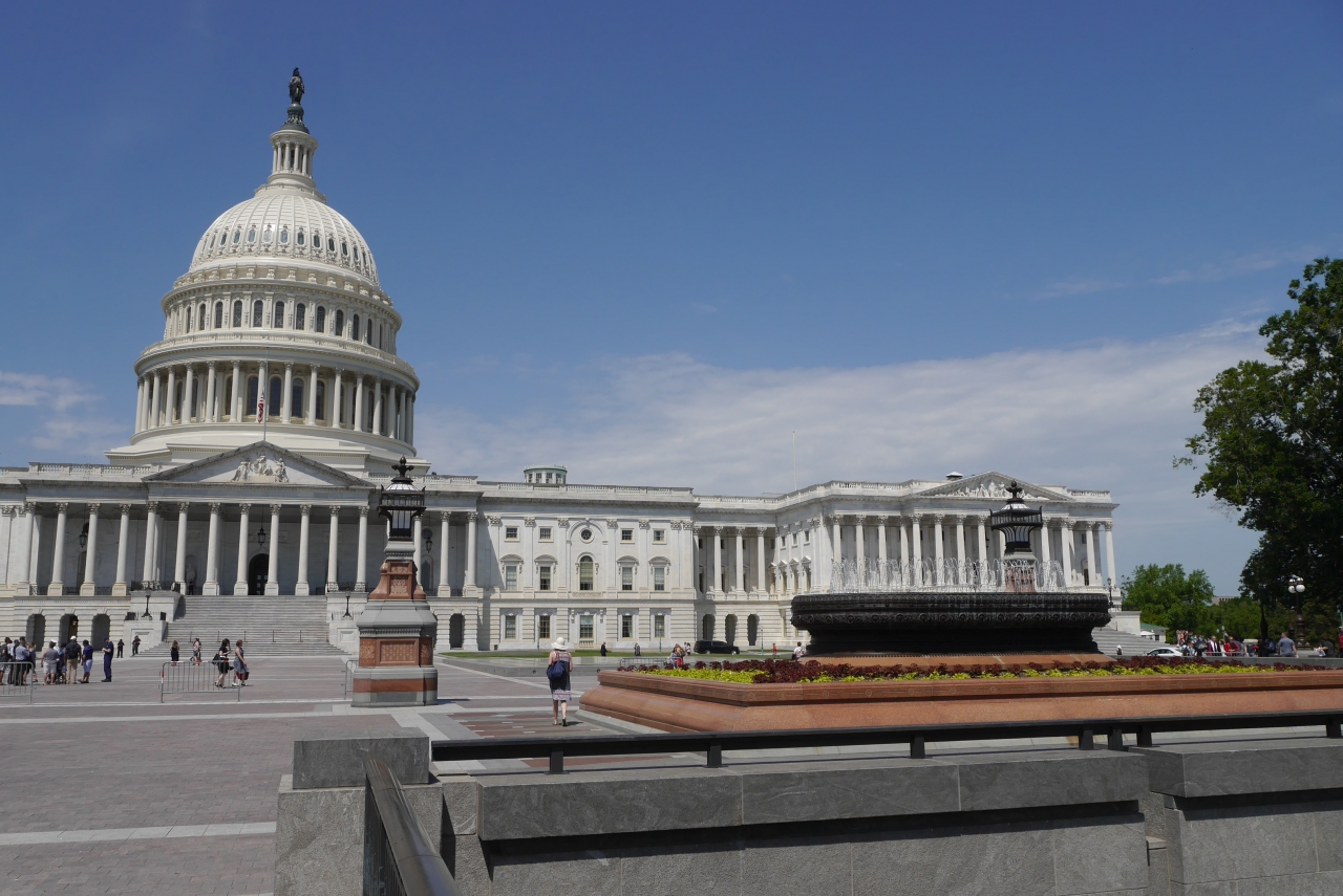 ワシントンのモール東端にあり、小高い丘の上に大きなドームが目立つ建物です。モール側からの景色は良く見ますが、今回は東側からの観光です。