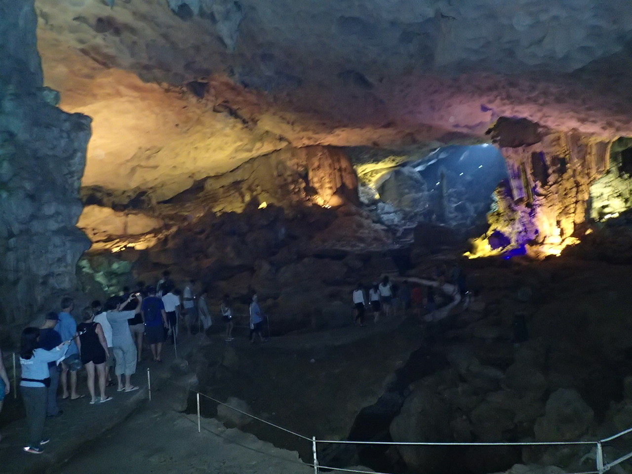 船で1泊した翌朝に島に上陸。階段を上がって鍾乳洞の入り口に行くまでに行列ができていました。