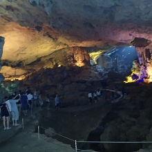 通路が狭く観光客が大勢いたので、鍾乳洞に入ってからも行列で少しウンザリしました。 でも中はかなり広く、動物に見立てた鍾乳石など、楽しめます。