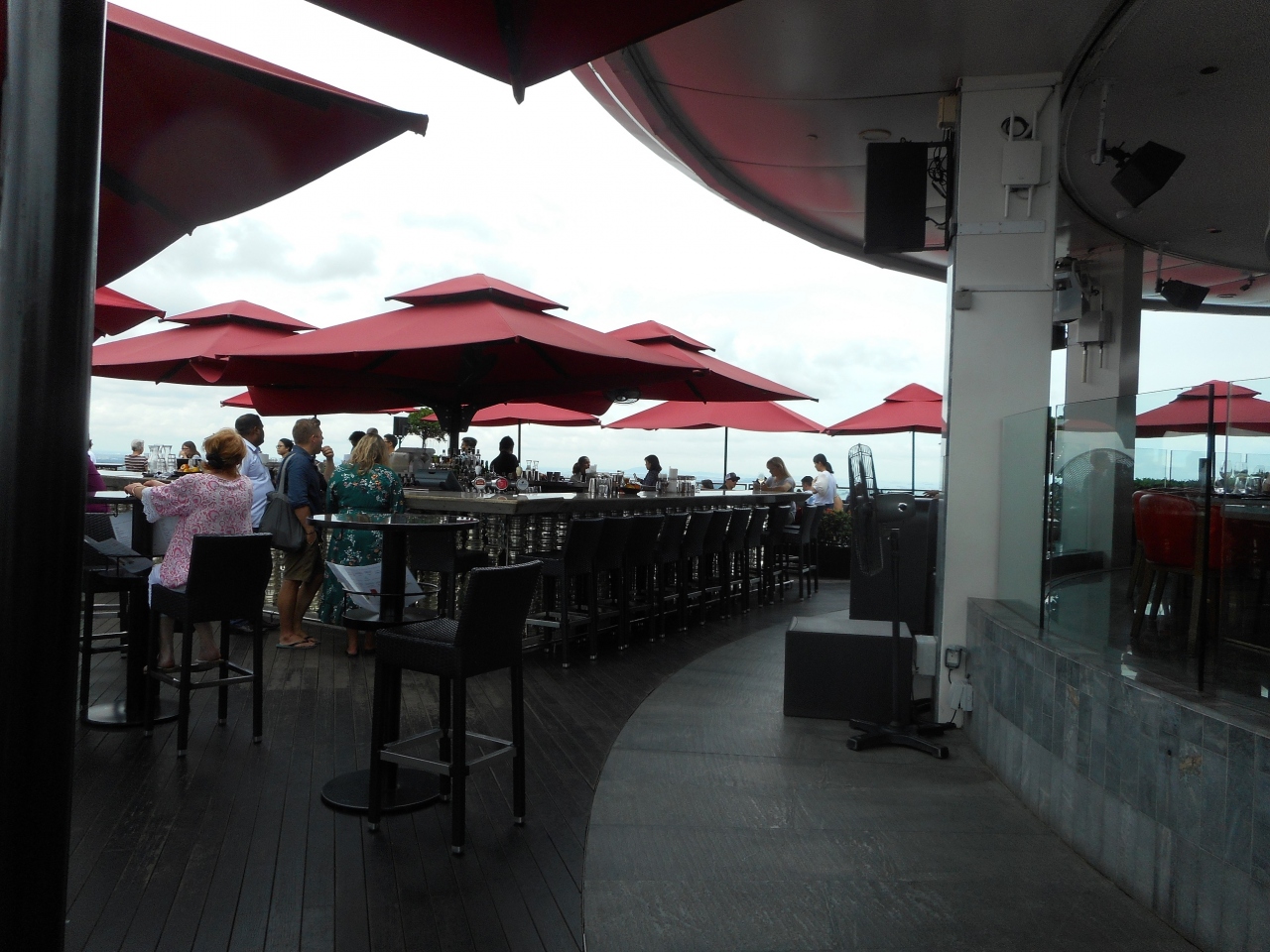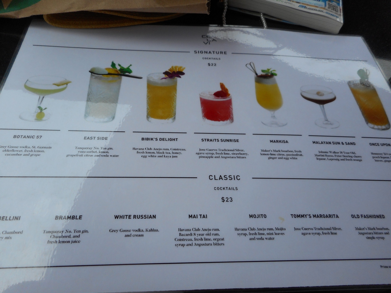 12時から夜10時まで利用できる入場料にあたるバウチャー20ドルを購入して飲み物に充当するのが一番のリーズナブルな方法。(時期、曜日によって違う可能性があるので注意)訪問したのは土曜日のお昼すぎ。シンガポールのアルコール飲料は高いので20ドル以上しても割り切ったほうがよい。(写真にメニュー掲載)スカイパークへは行けないので注意。スカイパークからは戻れないが来店できる。残念なのは、喫煙席のほうが景色がよい席になっていること。