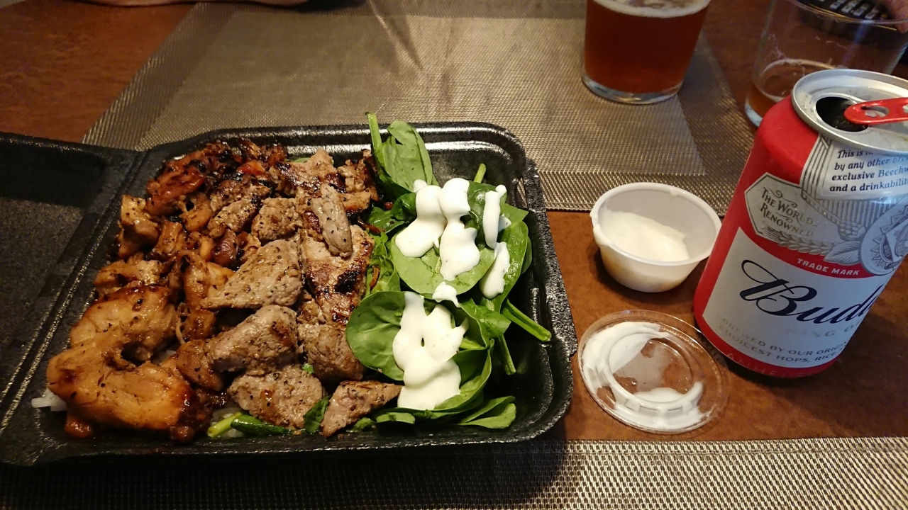 ビーチ目の前の「ステーキシャック」結構並んで居ました。でも早いしホテルの部屋へTO GO。ステーキとチキンのコンボをシェアして、ビールで乾杯しながらランチ出来ました。簡単にステーキを味わうにはこれで良いかなぁ…